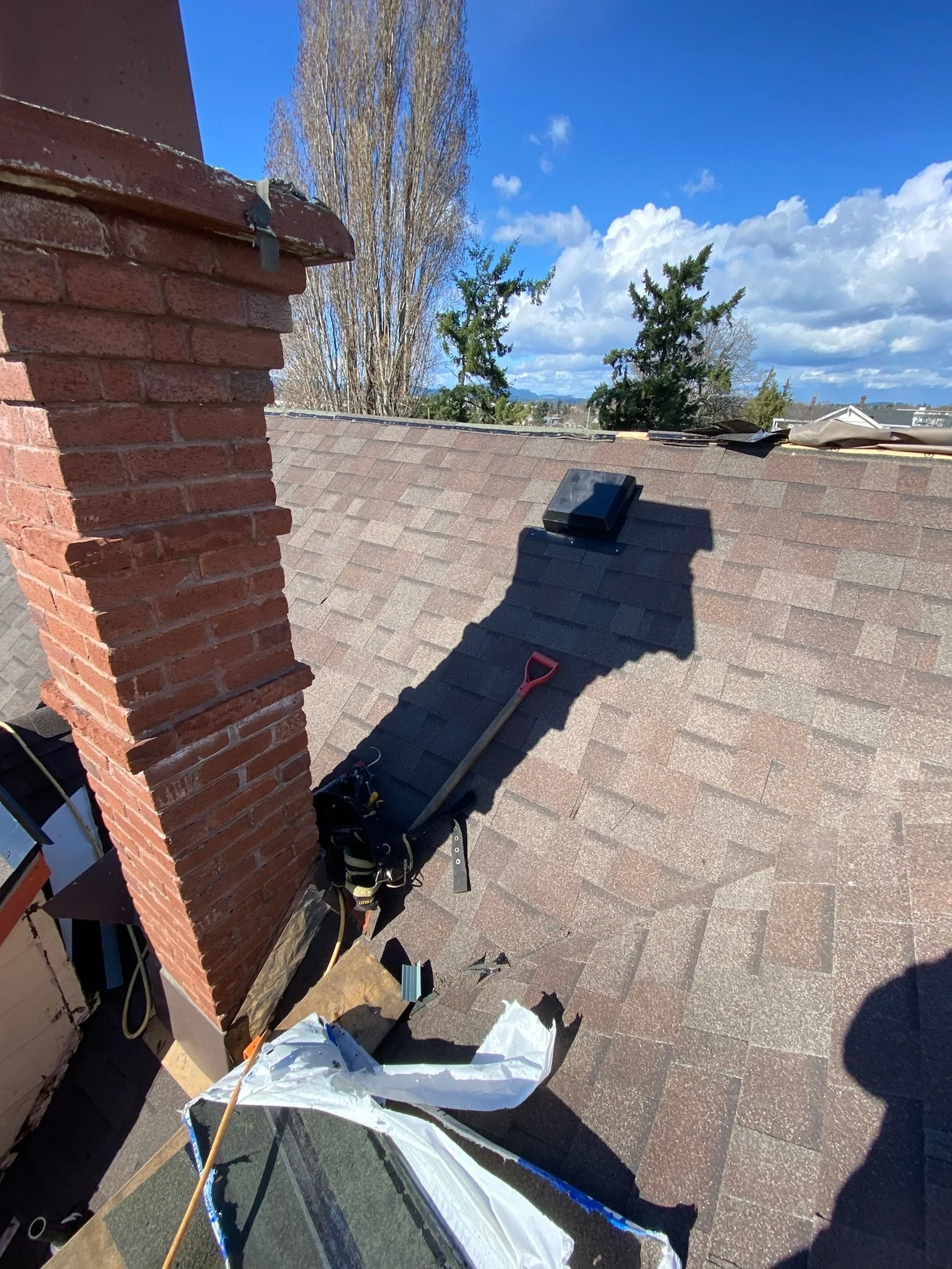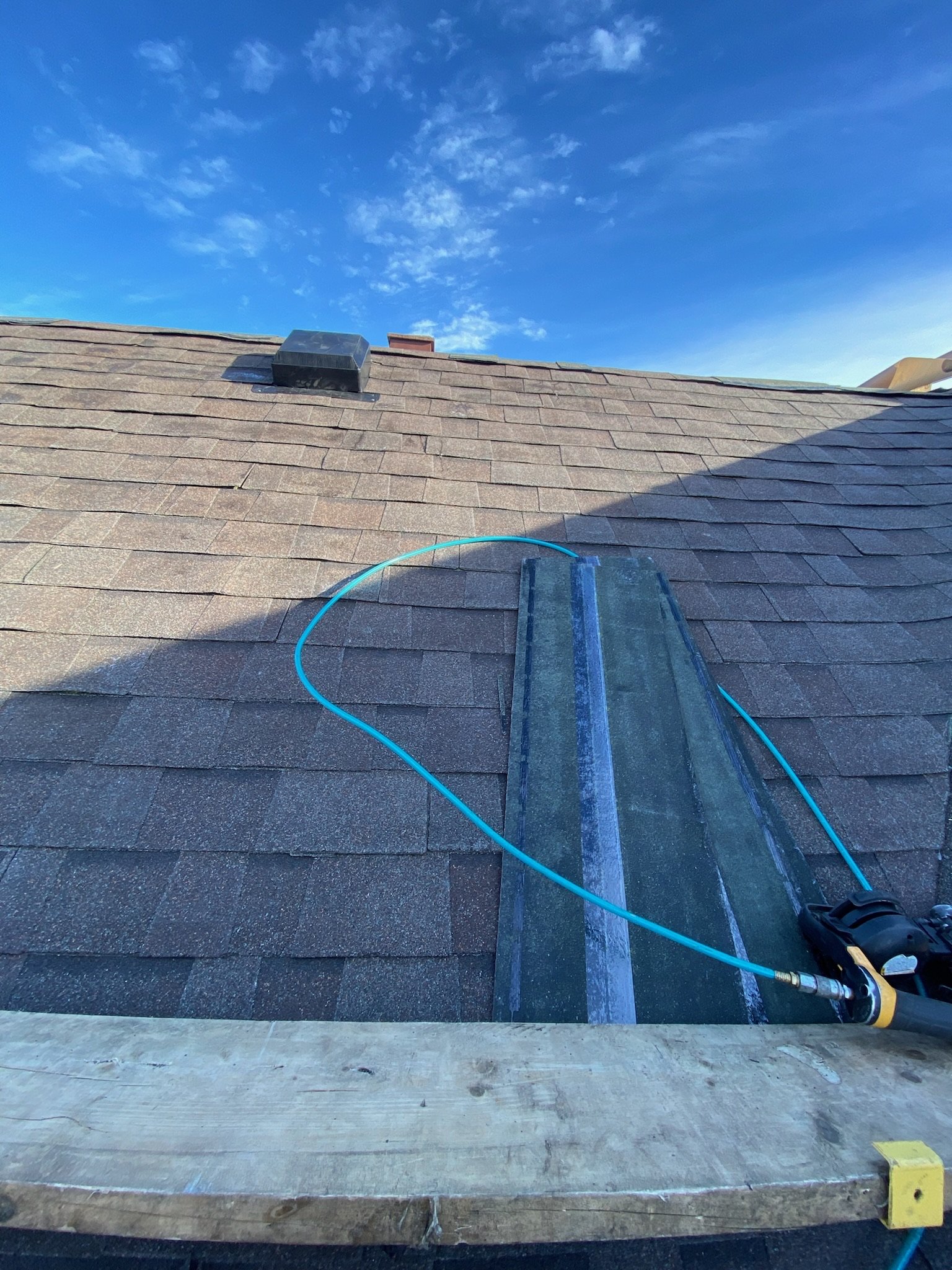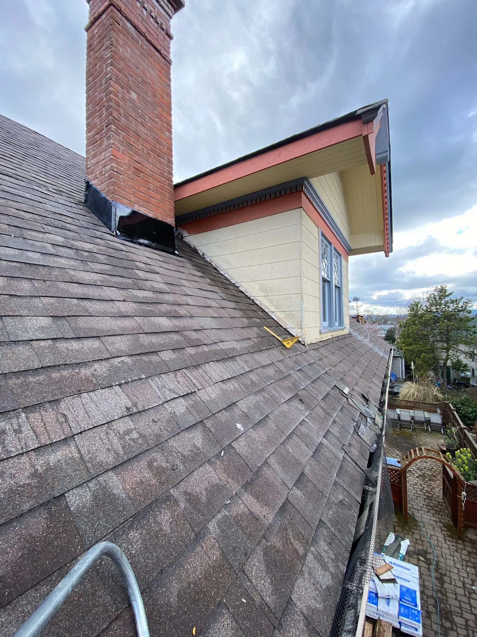Installation of Roof: Shingles or other roofing materials are then installed, starting from the bottom edge of the roof and working upwards. valleys, roof penetrations such as pipe flanges, step walls, and chimneys are addressed as we are moving up the roof.
