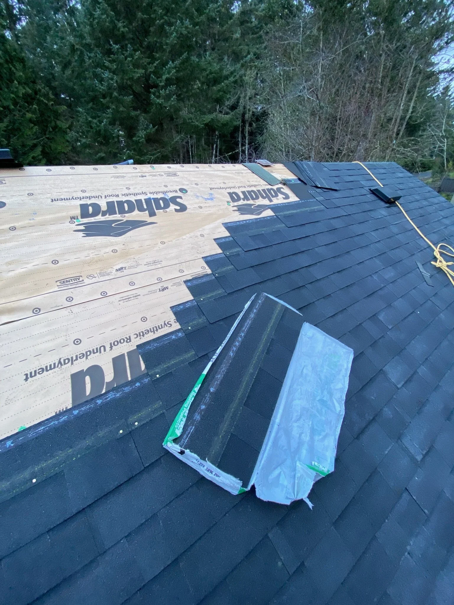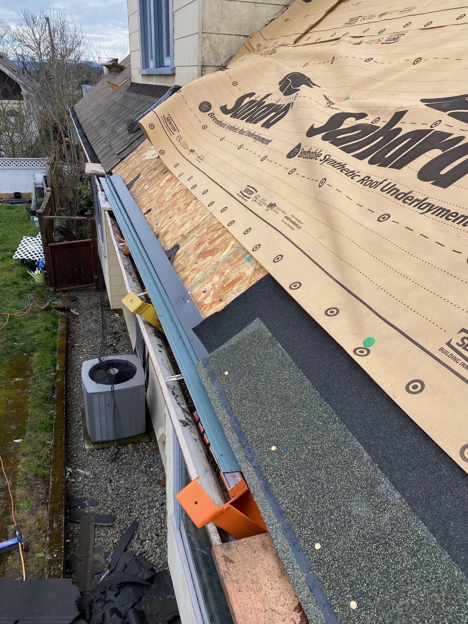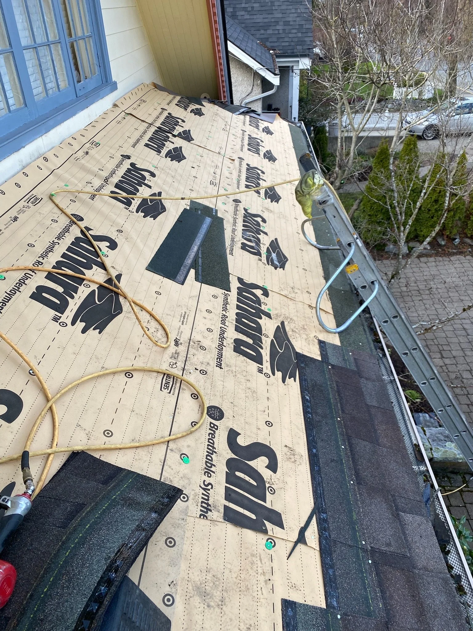 Underlayment: Installation of aluminum drip flashing, followed up by 3 to 6-foot rows of ice and water shield along the bottom of the roof, and finally, a high-quality underlayment that gets attached from the bottom to the top of the roof.